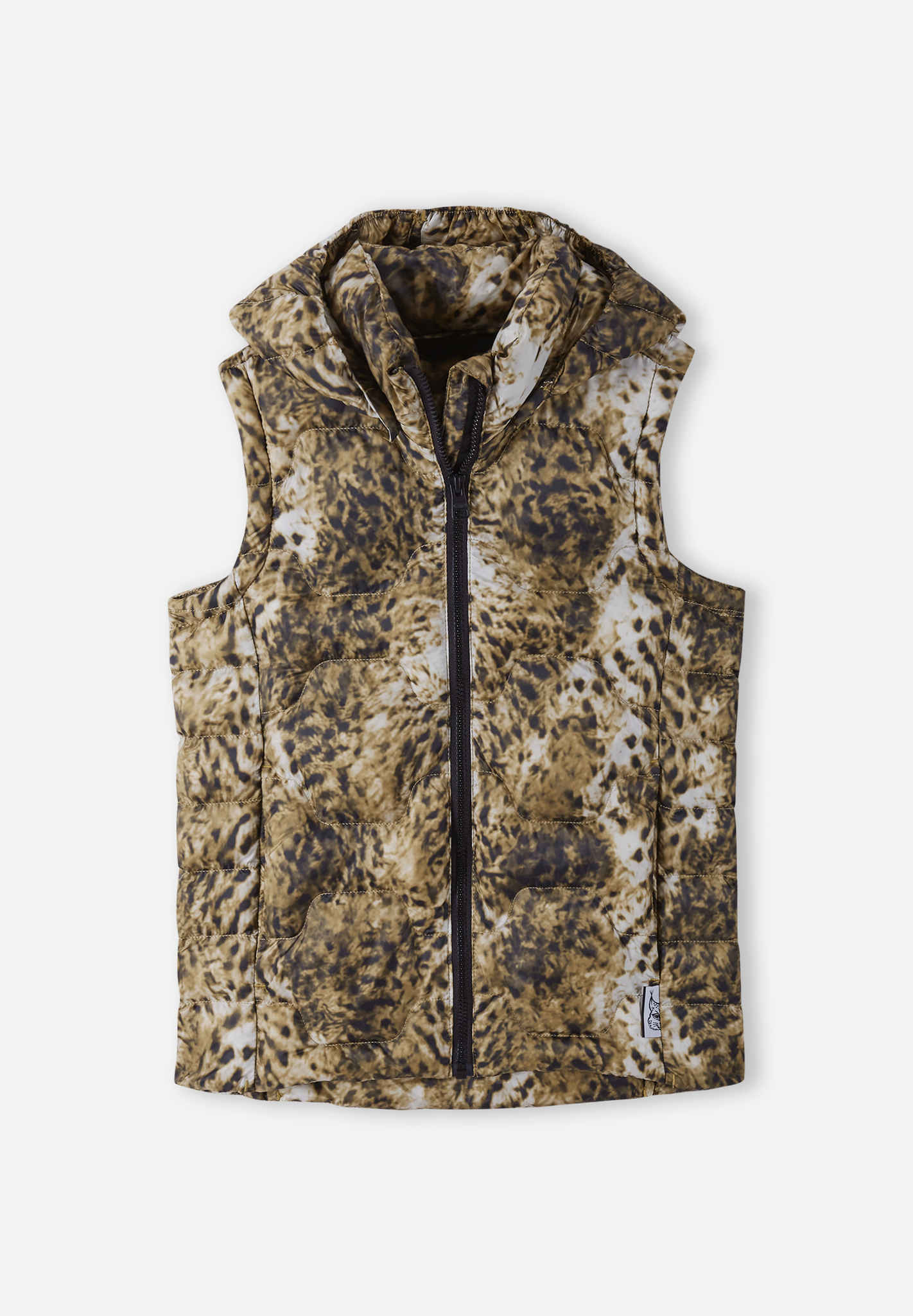 [--Read More--]An adorable animal print Reima jacket. What makes it so special is its design versatility — your child can wear it with sleeves or turn it into a vest! It’s a lightweight kids' insulated jacket that ticks all the boxes: it’s windproof, and repels water and dirt easily. It offers plenty of room for physical movement, so kids can jump, run, and leap under the trees. Made with 100% recycled fabric, the jacket creates low environmental impact. Its quilted lining delivers outstanding warmth thanks to its high-quality recycled insulation. A detachable hood and zip-off sleeves means the garment easily transitions from the forest to the city. Handy front pockets, with snap button closures, are perfect for stashing gloves (and other little goodies). Paying homage to the lynx, Finland’s native wild cat, this Reima jacket comes in two striking colour palettes. It’s an instant classic for every wardrobe and helps save our beautiful planet.