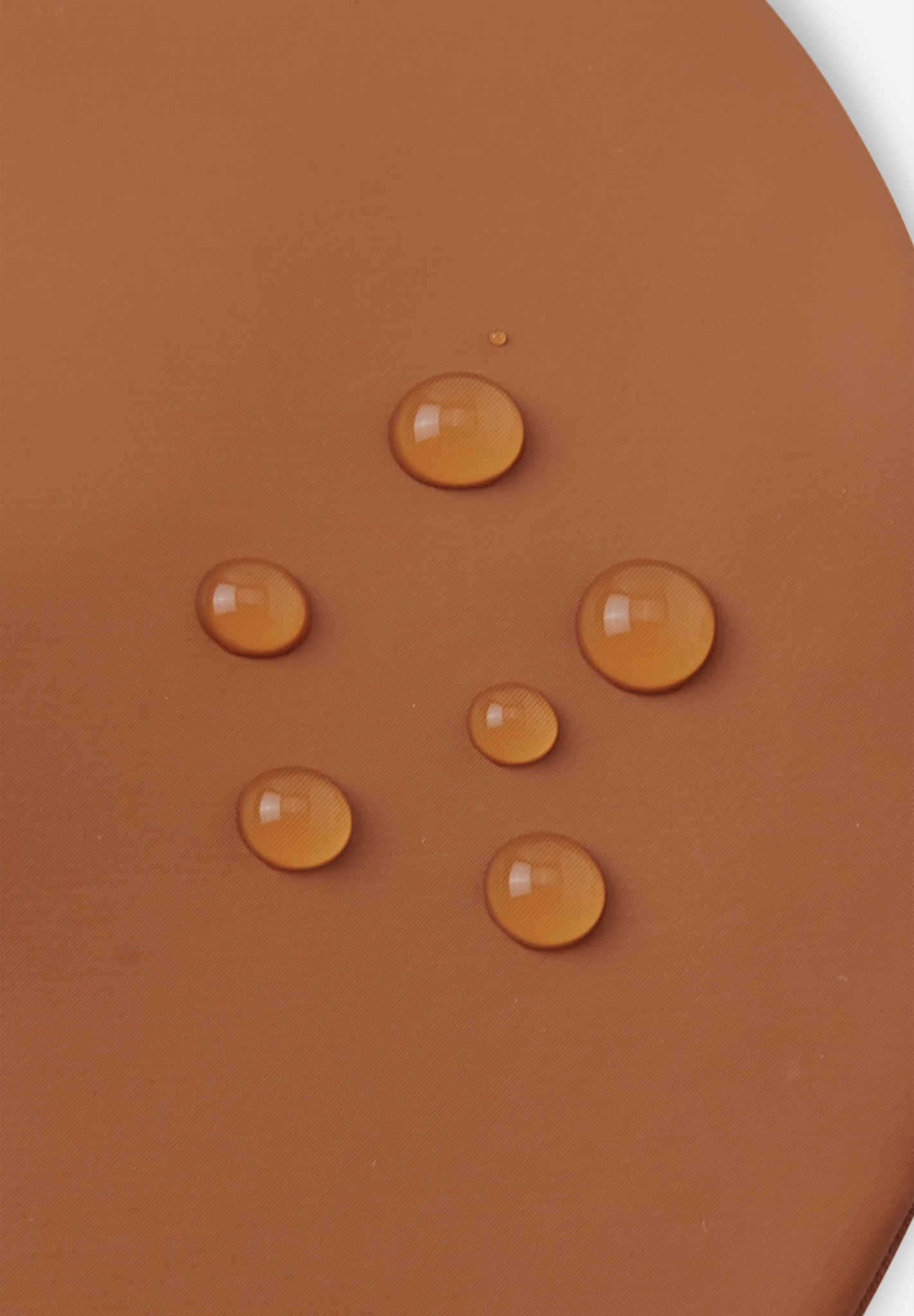These kids' waterproof mittens are made from a comfortable, flexible material and have a knit lining.