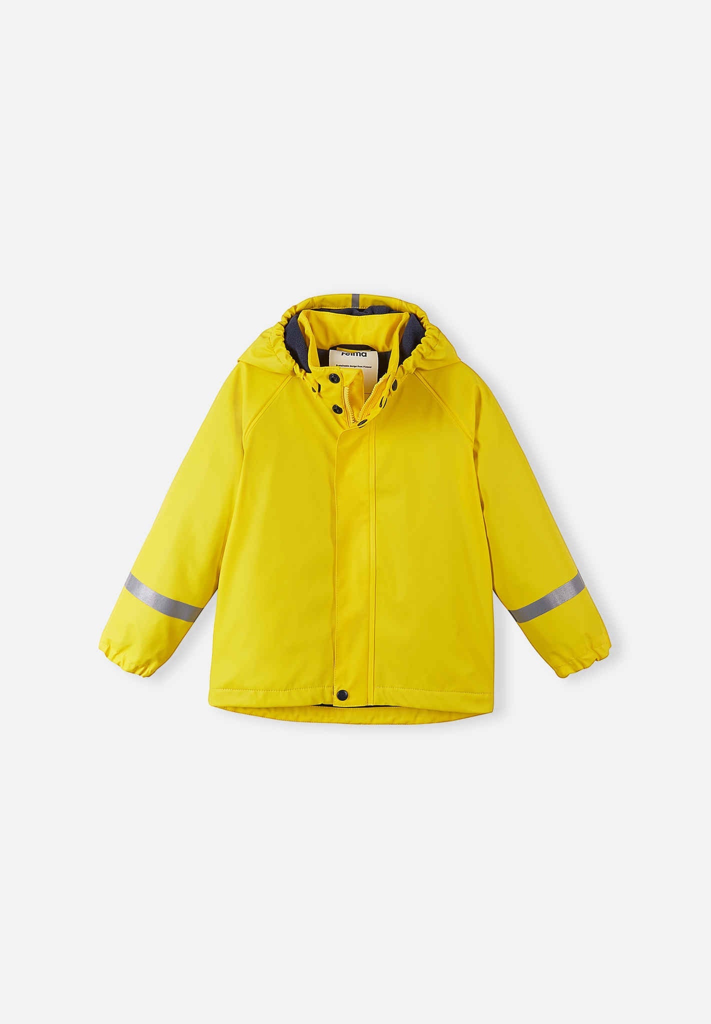 [--Read More--]For effective protection from showers, turn to this toddlers and kids' rain outfit. Welded, waterproof seams guarantee that no wetness will seep through. Reima's flexible PVC-free rainwear material with lots of recycled content keeps little ones dry. This children's rain set has a comfortable fleece lining, so it's warmer than a traditional rain outfit. The hood not only protects from rain but is safe when little ones are playing outdoors – its snap buttons mean it comes off easily if it gets caught on anything. The jacket has an easy-to-use front zipper and protective storm flap. The pants feature a comfy elasticated waist and a fitted fleece vest top that keeps the back covered through all adventures. The legs have detachable elasticated foot loops and stretchy hems. And because winter mornings can be dark, this outfit is garnished with several reflective details.