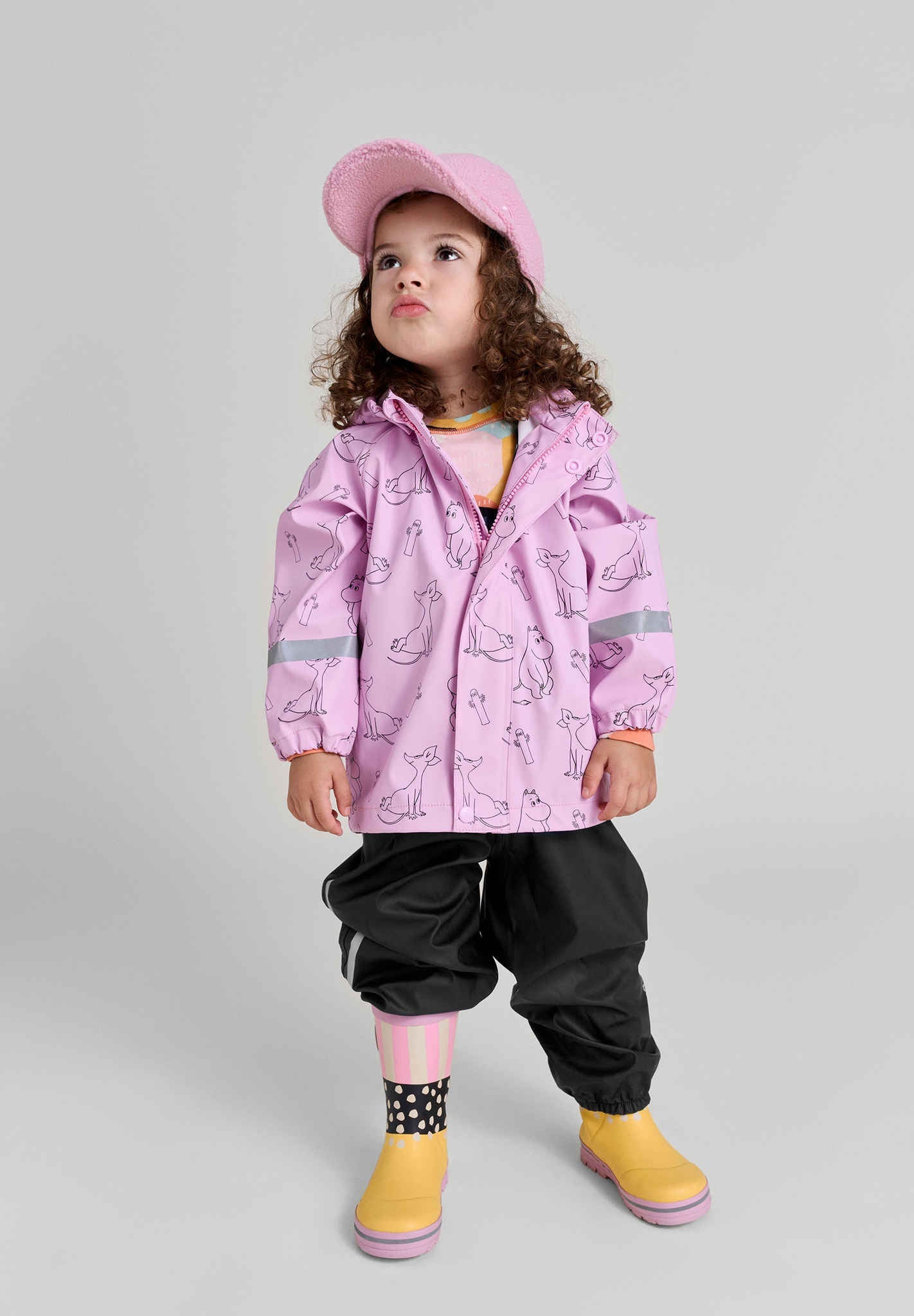 [--Read More--]This unlined toddlers' rain outfit is great for wet days in spring and autumn. When you add warm layers underneath, it'll protect little ones even during the chilliest weather. Welded, waterproof seams guarantee that no rain comes through to your little one's skin under this kids' waterproof suit. The detachable hood not only protects from drizzle but also safely comes off if it gets caught on something when children are playing outdoors. The pants stay up thanks to the elasticated, adjustable suspenders and the removable foot loops are easy to pop under rubber boots or waterproof trainers to keep hems in place. All Reima children's rain gear is made from a flexible, PVC-free material.