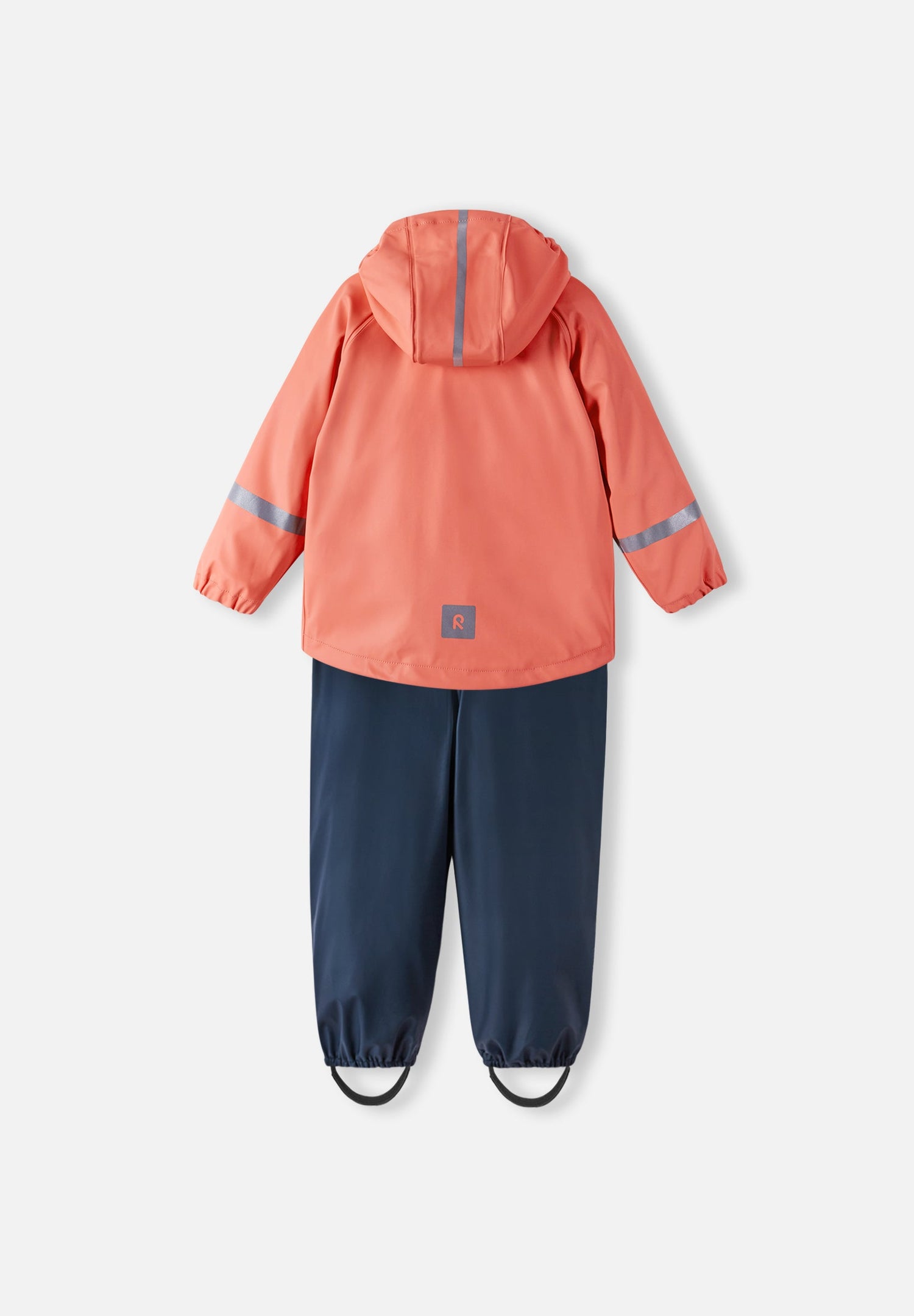 Toddlers' waterproof rain set(rain coat and rain pants) with welded seams. Flexible material that's usable all year round.