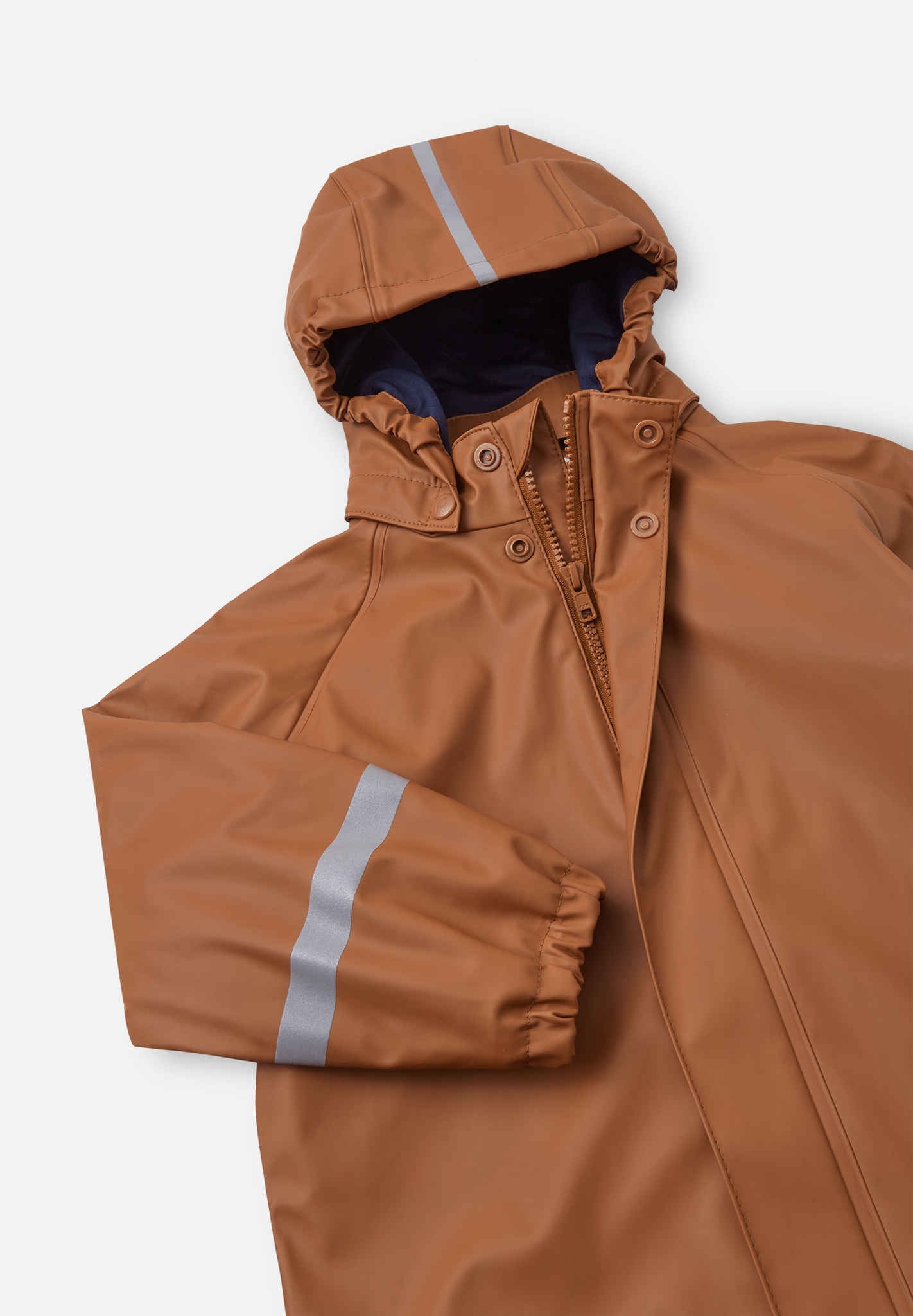 Super practical rain set for colder days. Includes a waterproof jacket and pants, both with waterproof welded seams and a warm, smooth knit lining. Contains recycled materials.