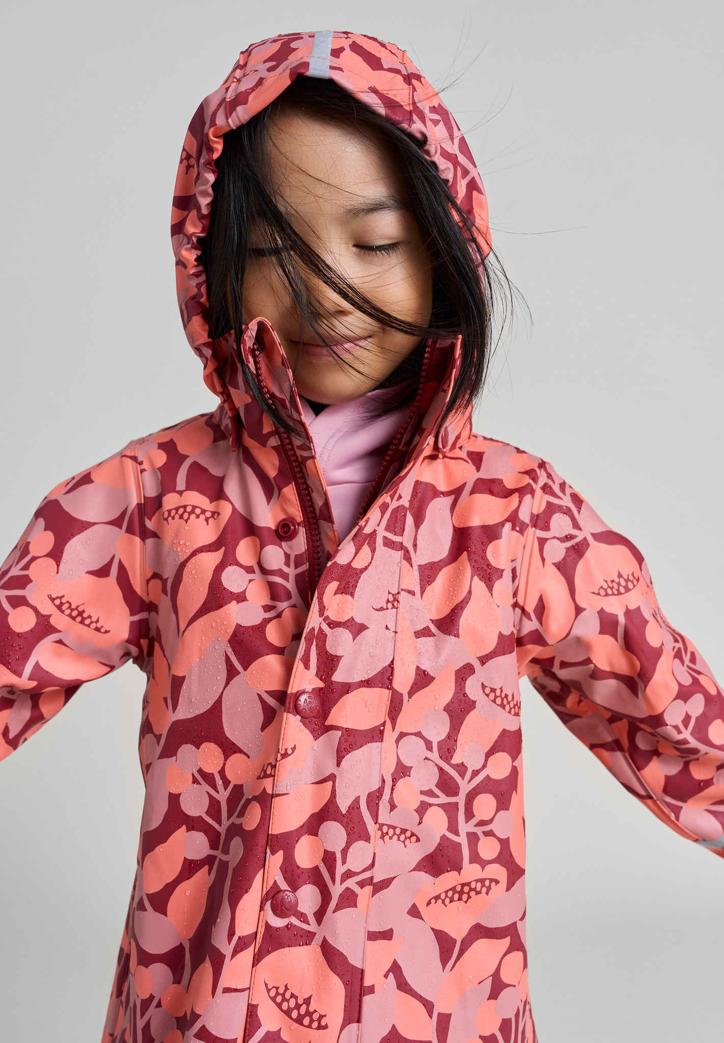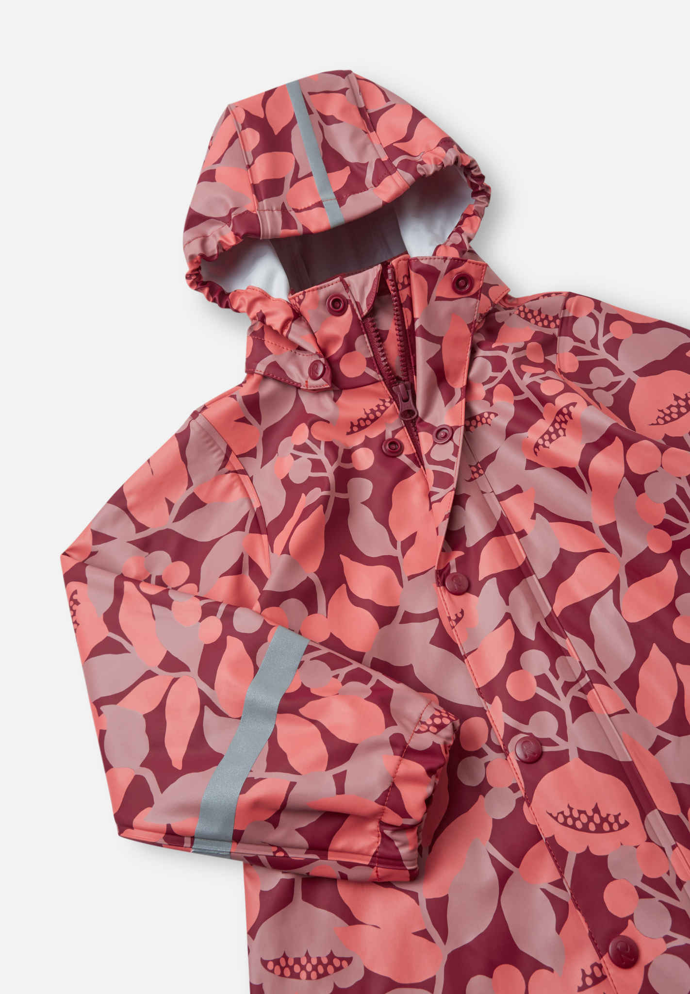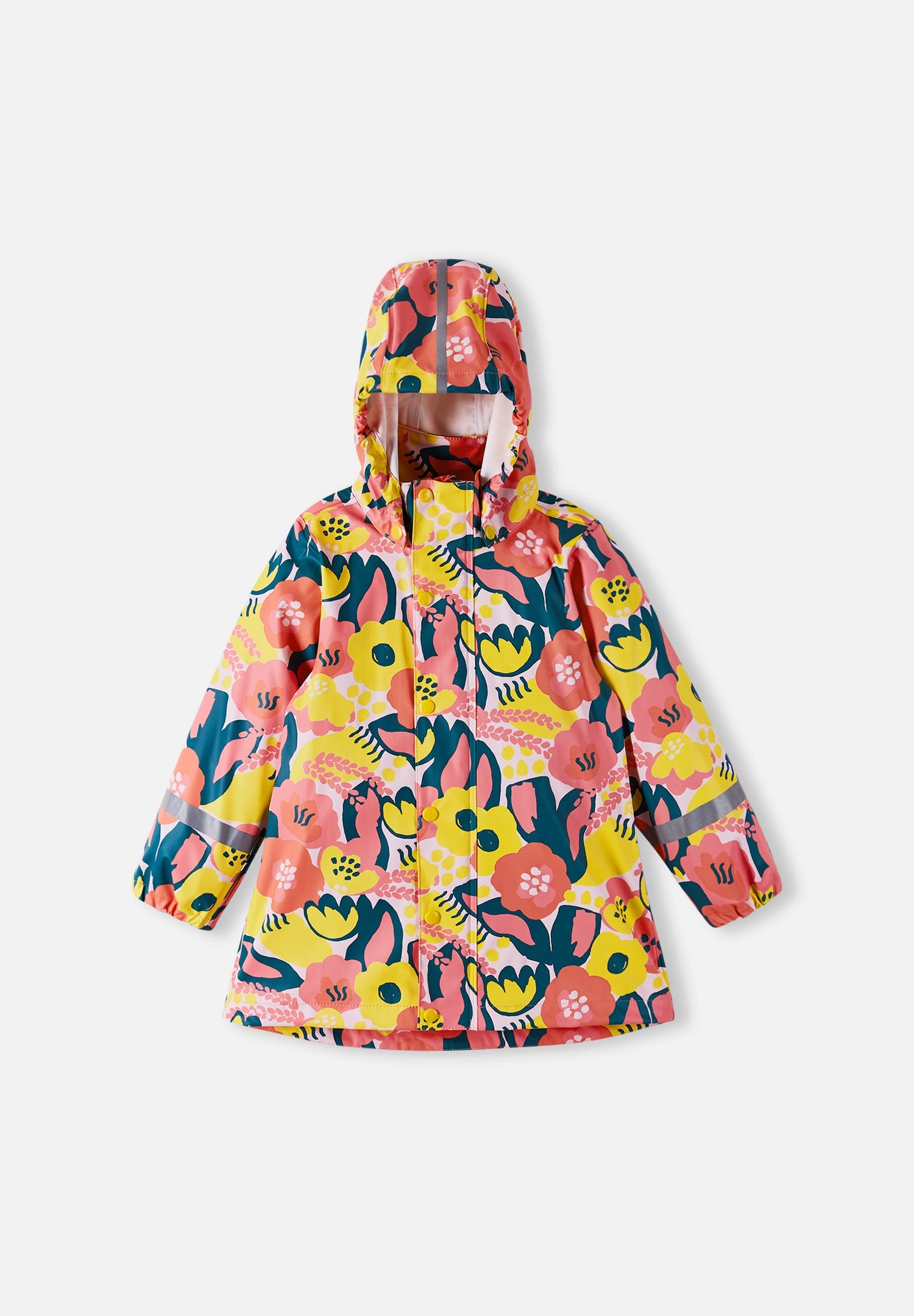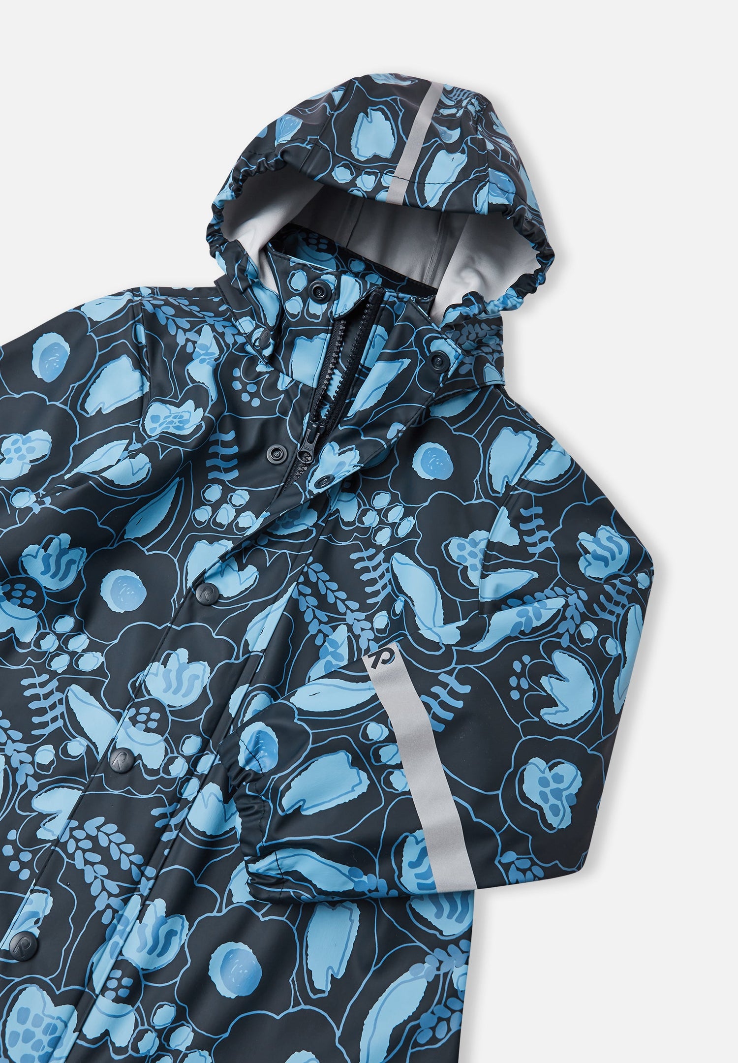 [--Read More--]This kids' Reima raincoat is made from a comfortable, flexible PVC-free material. The seams are welded waterproof, and the A-line shape with a longer back gives effective protection from drizzle and showers. This kids' rain jacket won't harden in frost, making it ideal for all year round – just add extra layers for warmth! The detachable hood protects from heavy rain, and the coat has a handy full length zip-up front. The reflective details make sure children can easily be spotted in the dark.
