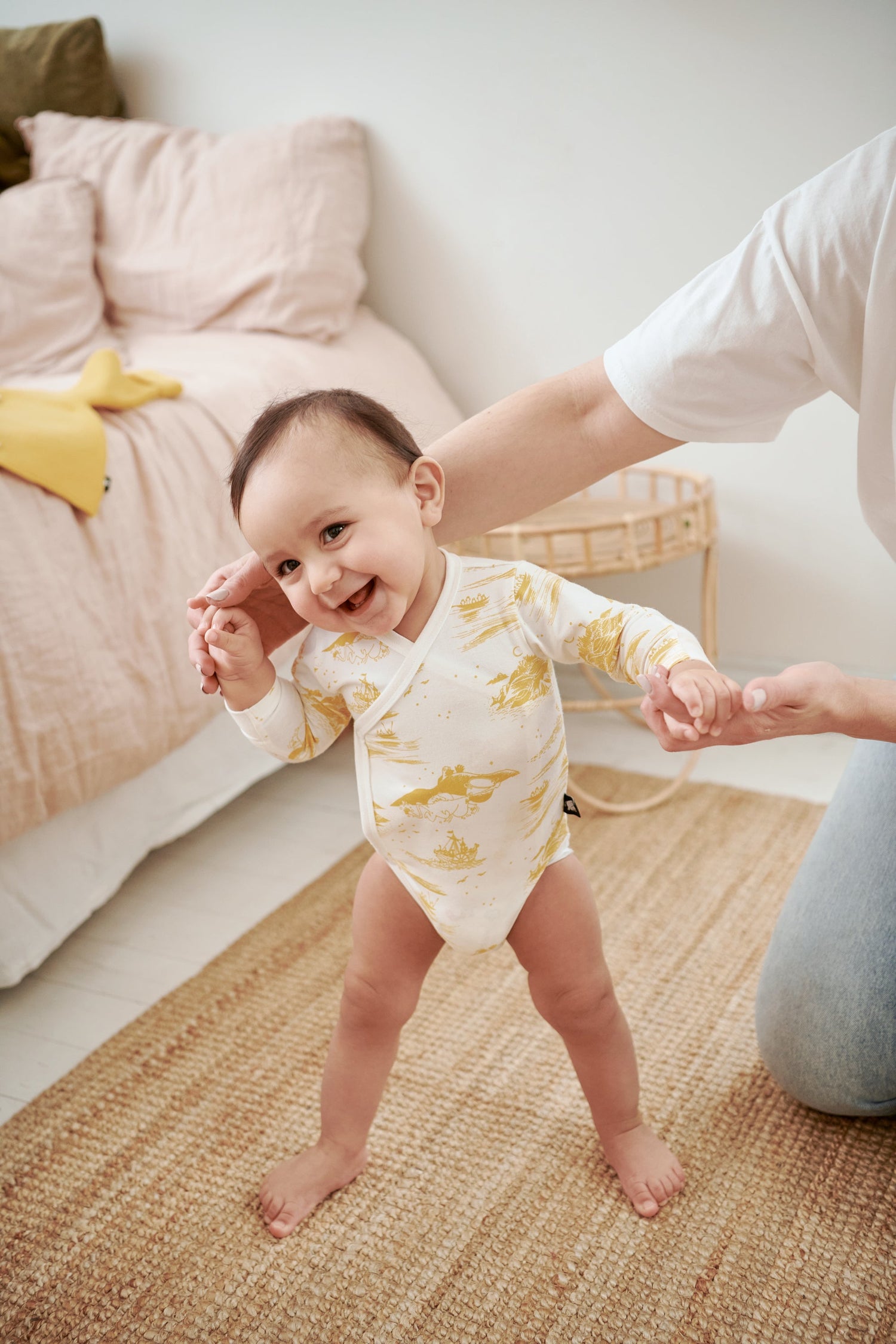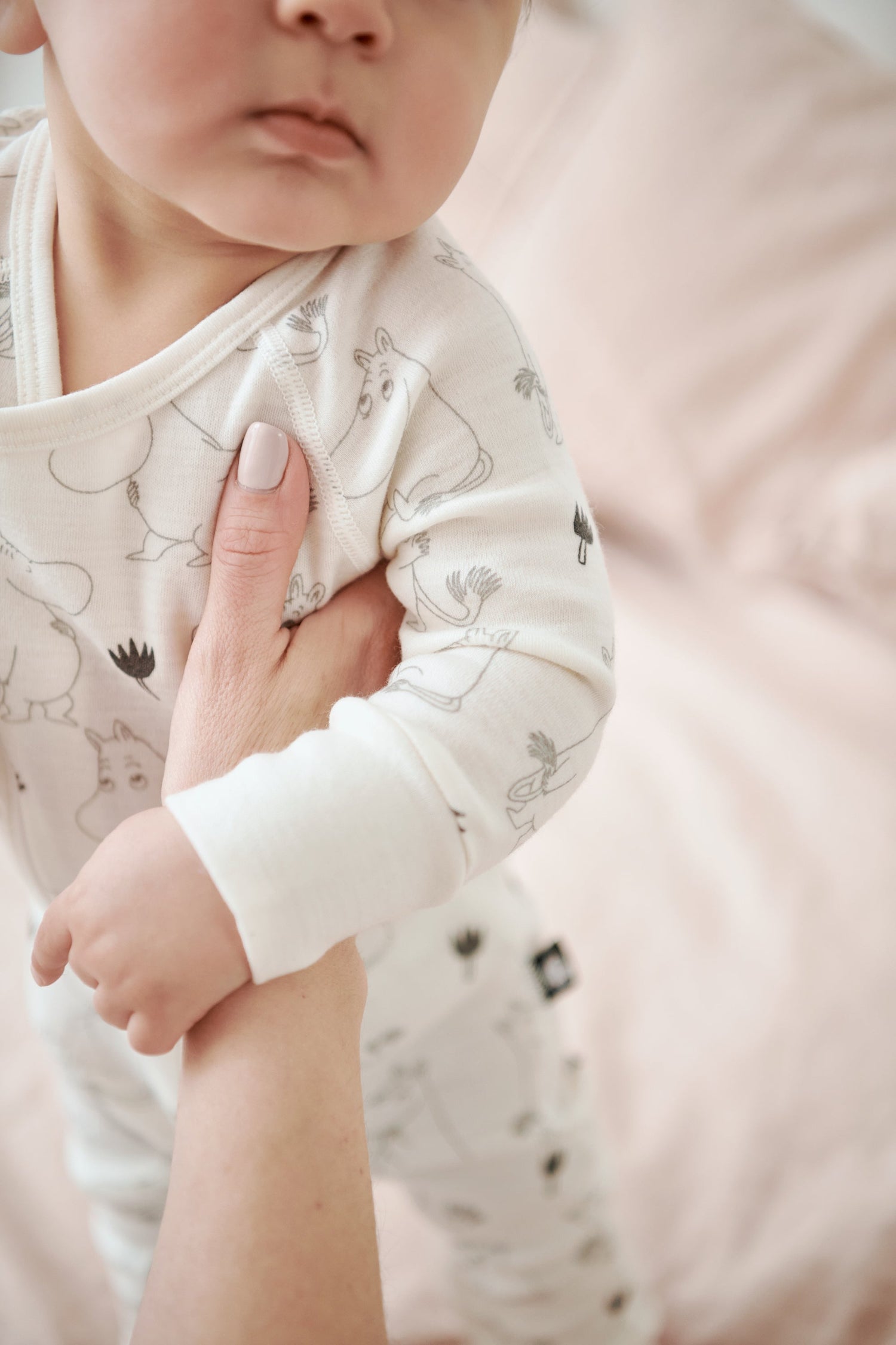 The central print in our gender-neutral designs and colors is Moomin, a family of trolls created by popular illustrator Tove Jansson. The Moomins are a carefree, accepting, and adventurous family who live in Moominvalley and they have many adventures with their friends.