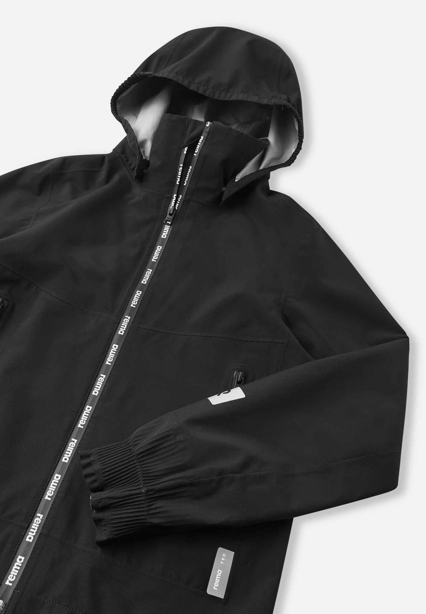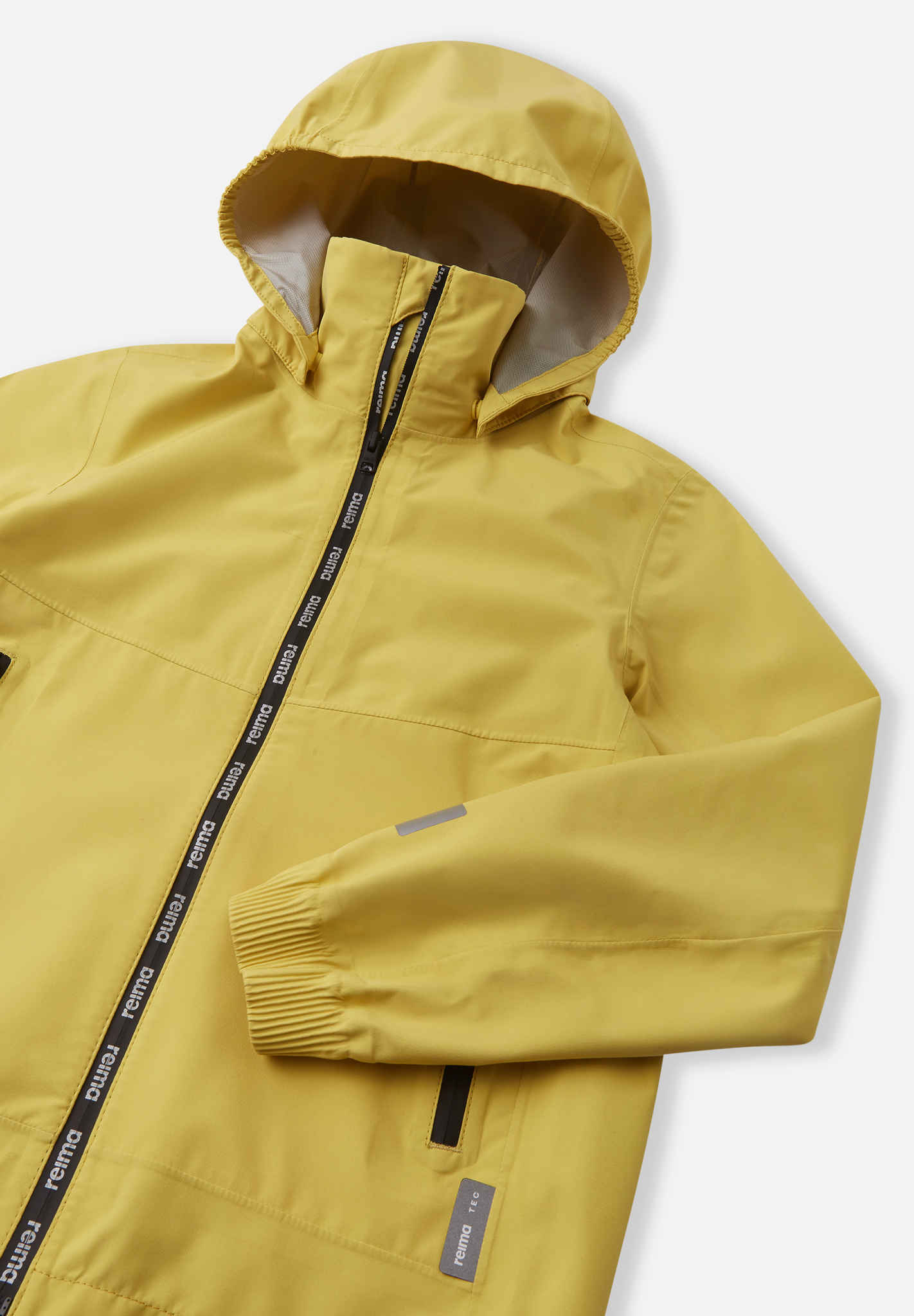 Very light, waterproof and breathable all-weather jacket for kids. 2.5 layer fabric: no lining, yet pleasant and smooth on the inside. Easy to take along, packs into small space.