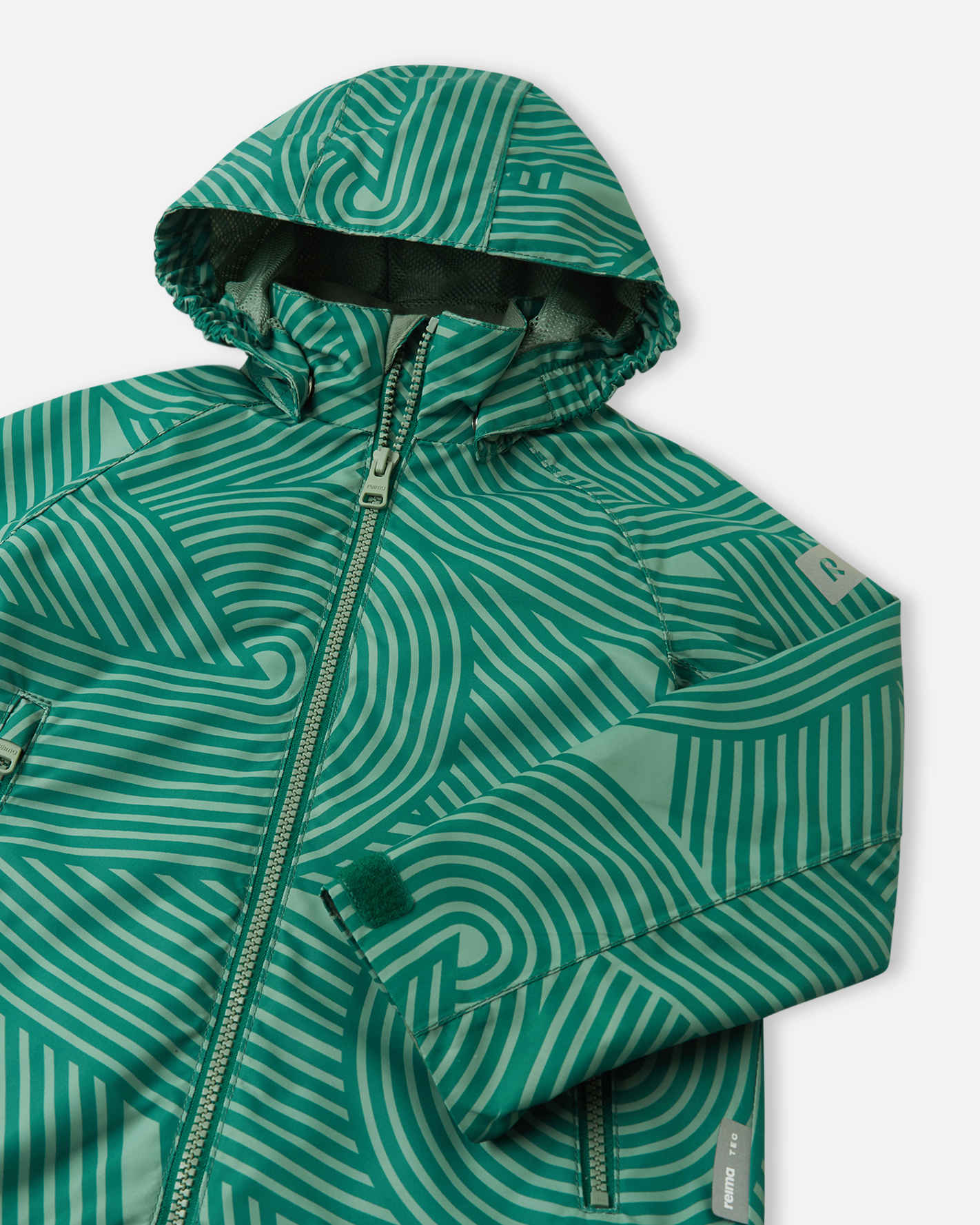 Reimatec breathable, water- and windproof kids' midseason jacket. Has two zip pockets.