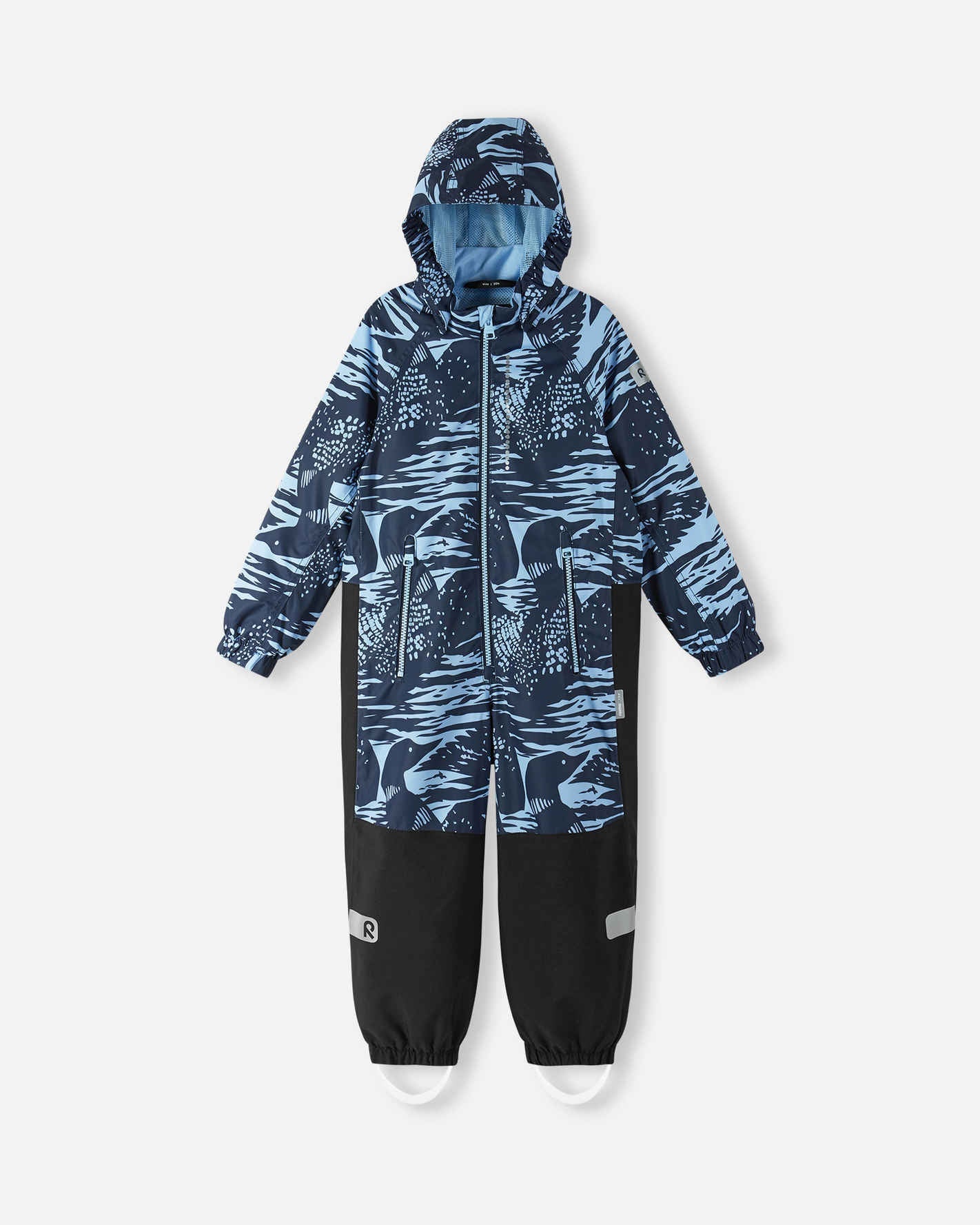 Reimatec water- and windproof kids' midseason jumpsuit with durable reinforcements.