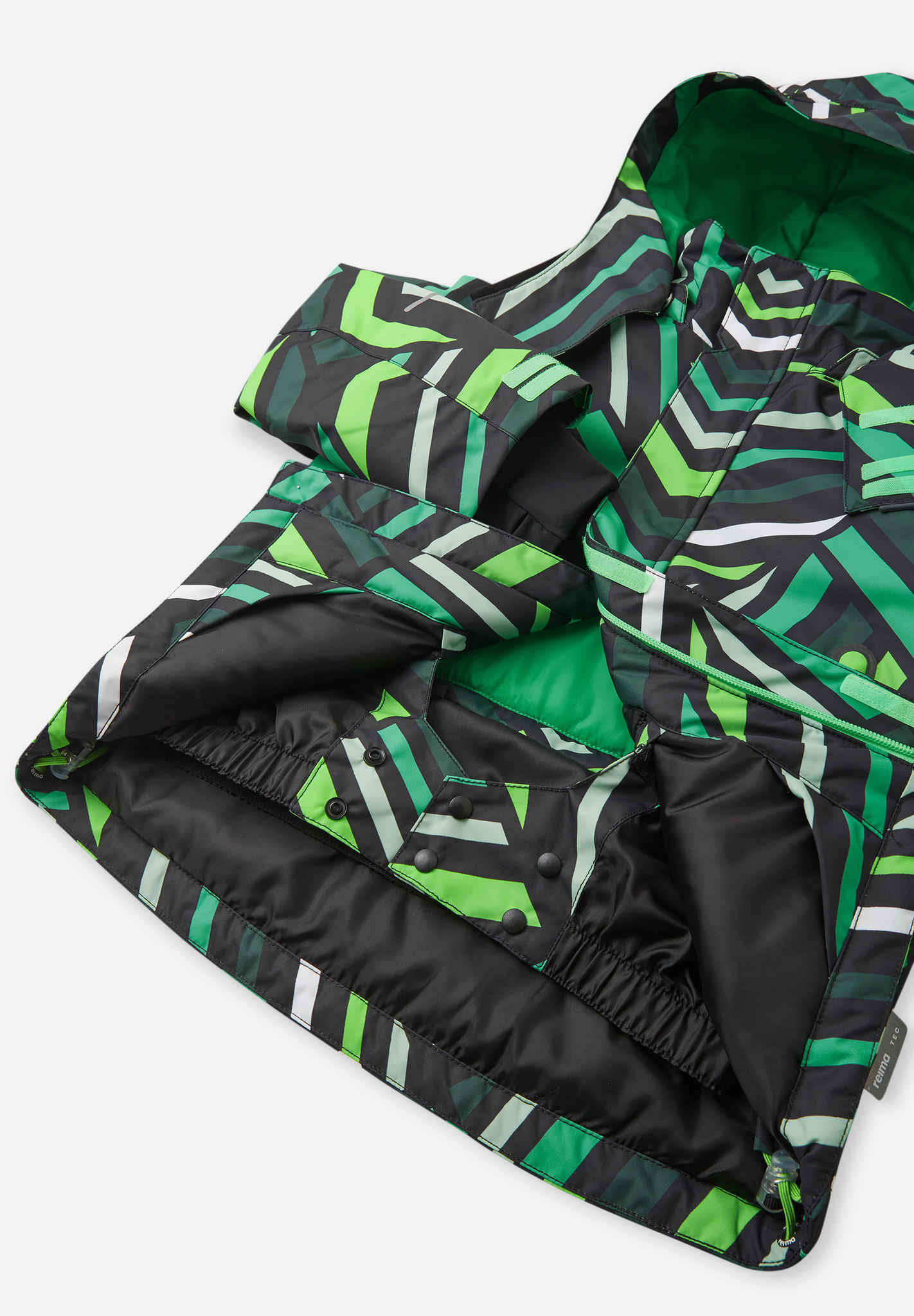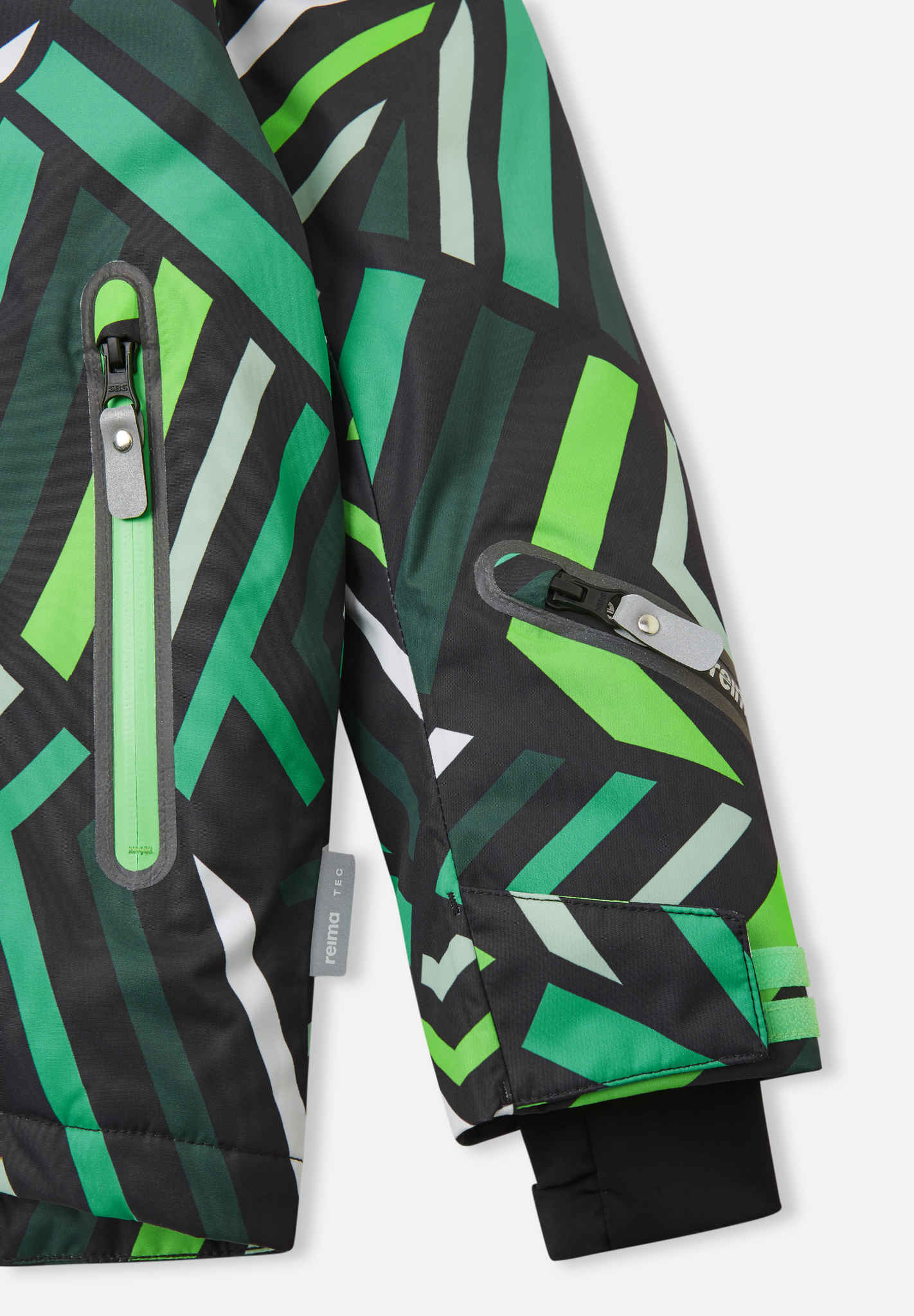 Reimatec kids' ski jacket made with recycled fibers. Several pockets and adjustable features. Extremely water- and windproof as well as breathable. Straight cut.