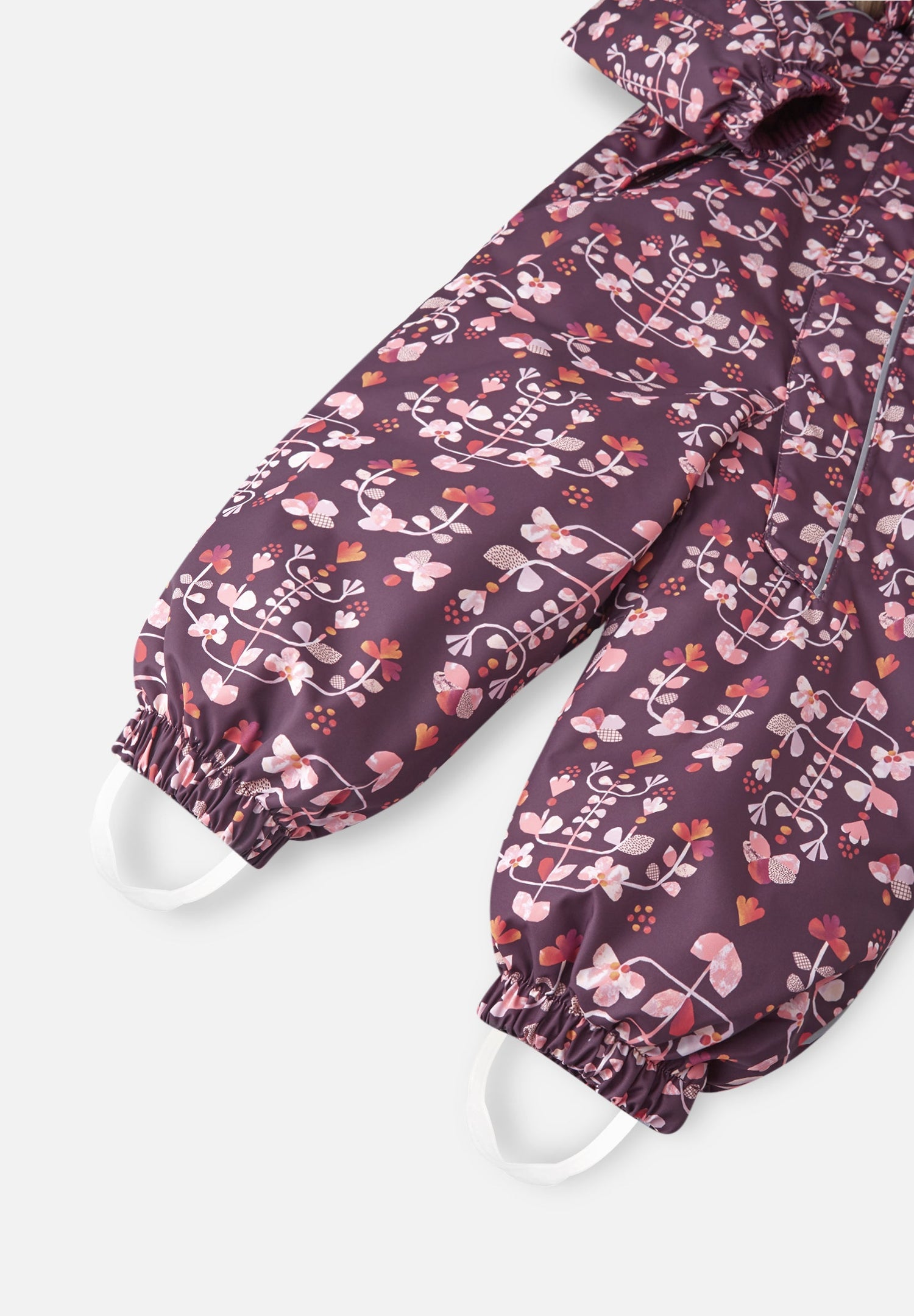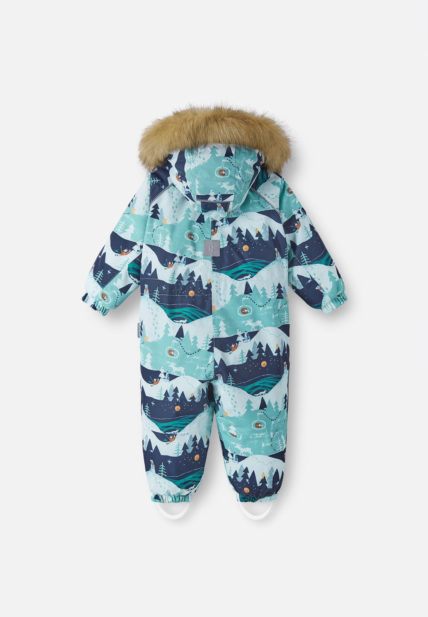 able and adjustable hood with detachable faux fur trim is also safe when little ones are playing outdoors – connected with snap buttons, it comes off easily if it gets caught on something. Durable silicone foot loops keep the trousers hems in place, protecting little ankles from moisture and the cold. This tumble-dryer-friendly winter all-in-one is a great choice for crawling in the countryside or strolling in the city!