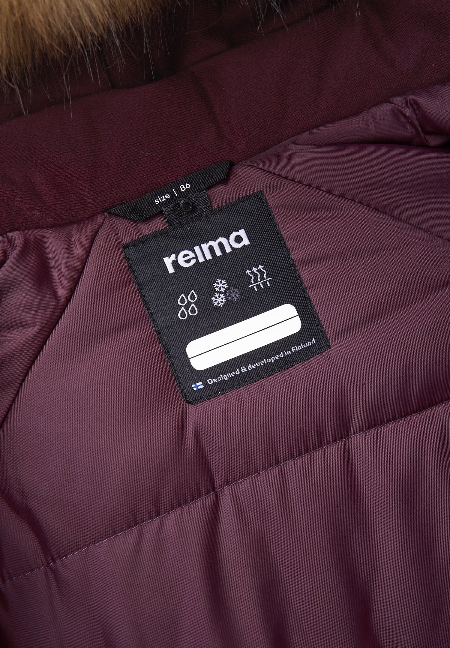 Wash separately inside out. Remove faux fur trim before washing. Close zippers and velcro tapes. Do not use detergents with bleaching agents. Do not use fabric softener. Remove the garment after finished washing program to avoid color change. Tumble drying or drying cabinet allowed (max. 40 °C).