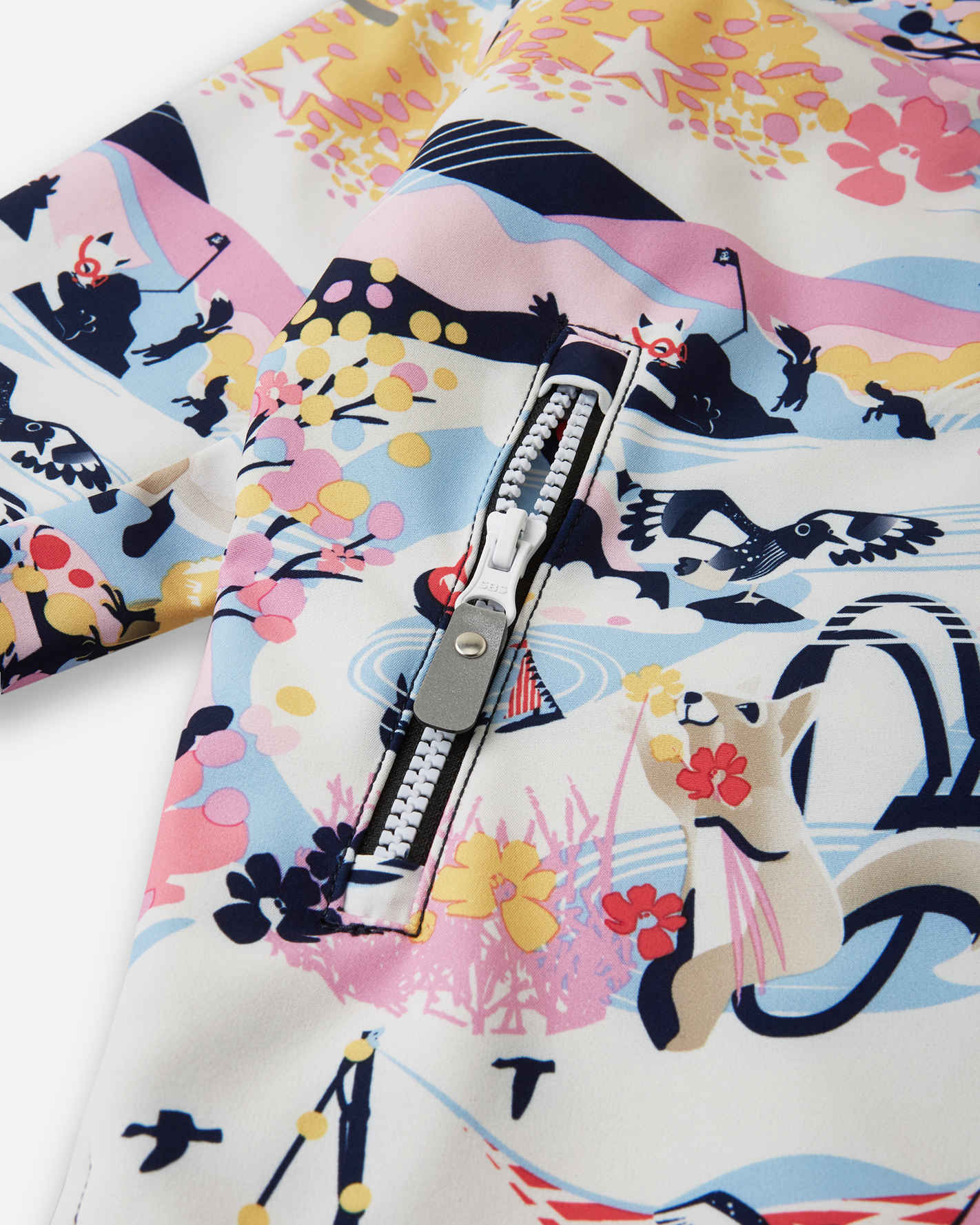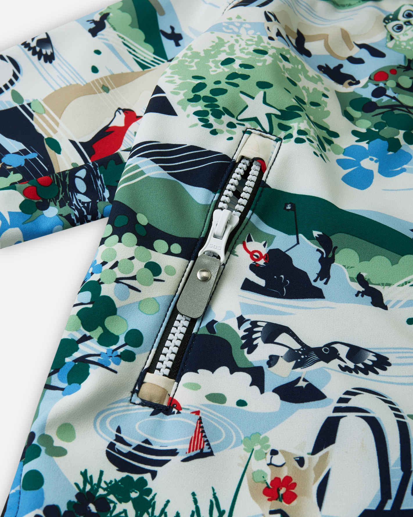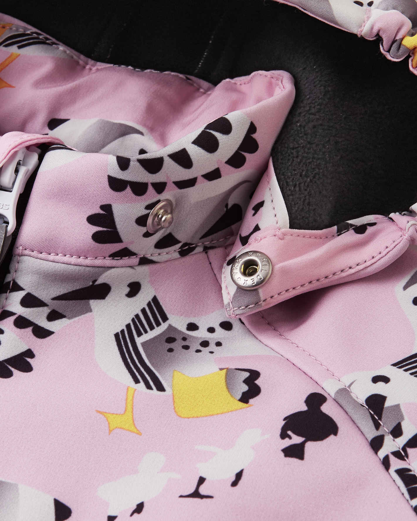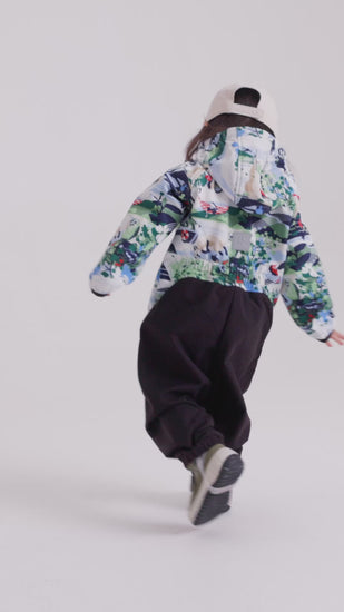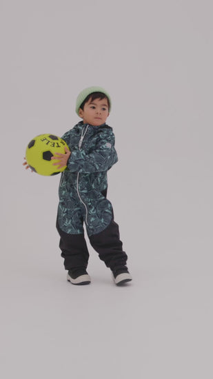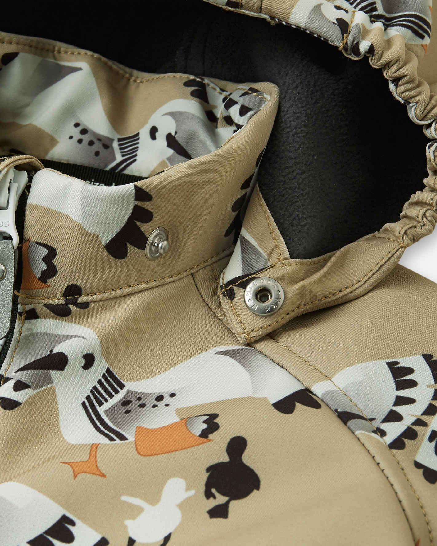 Toddlers' comfortable softshell overall. Blocks wind and keeps out light rain. Very durable bottom part.