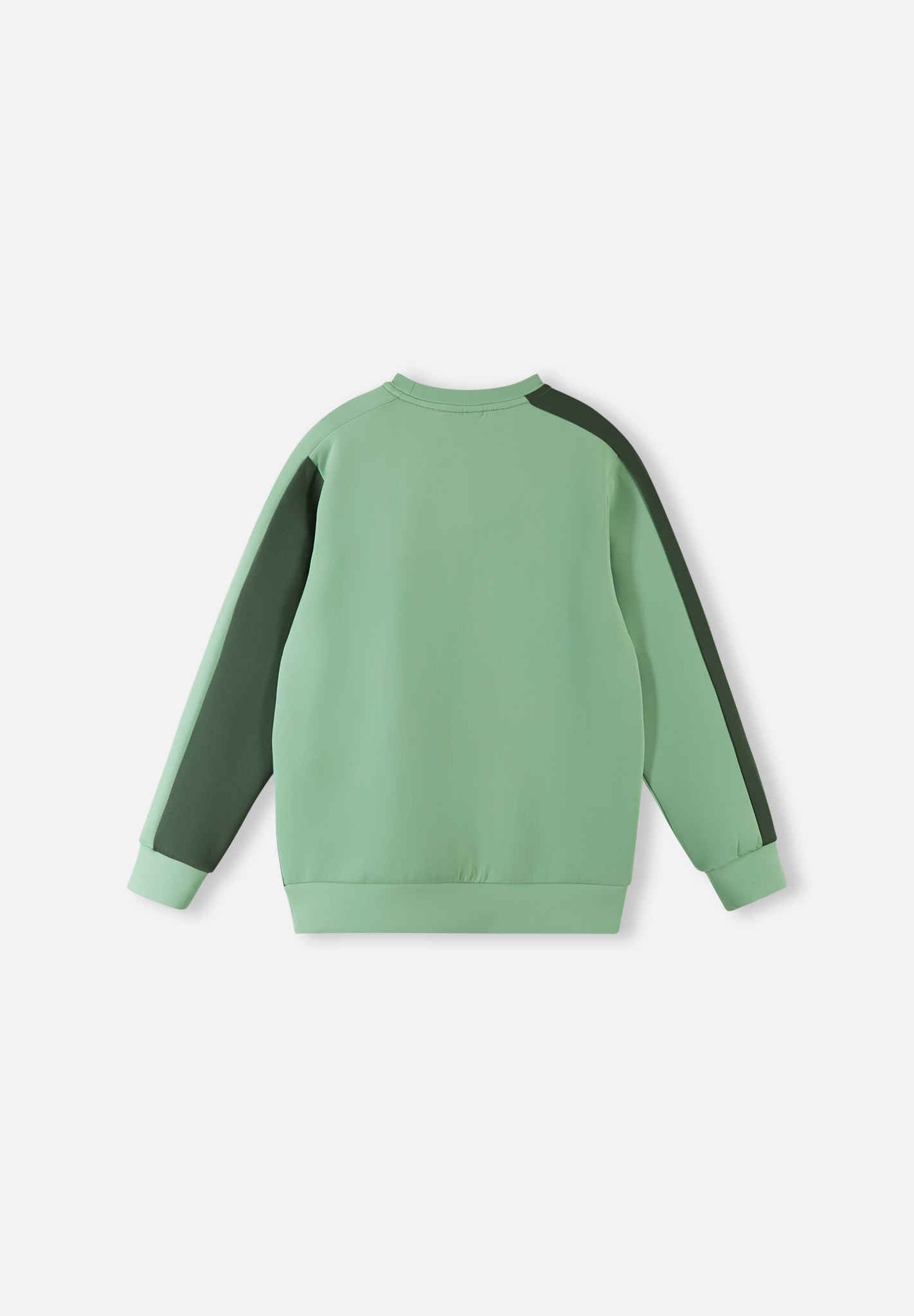 Kids' sweater in a comfortable material made with recycled fibers. Feels very smooth and nice, wicks moisture away from the skin and dries quickly.