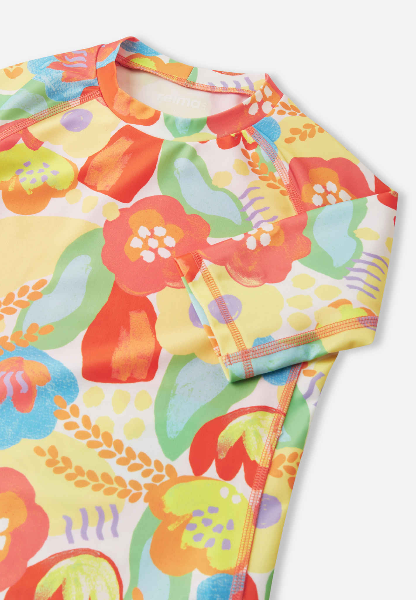 Kids' swim shirt with elbow-length sleeves. Quick-drying and has UV protection.